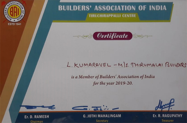 Er.L.Kumaravel brings a rich experience of 20 years in the construction business. Throughout the years, Thirumalai Builders has established a standing for high quality construction, delivering customer satisfaction, maintaining financial stability and achieving project excellence.